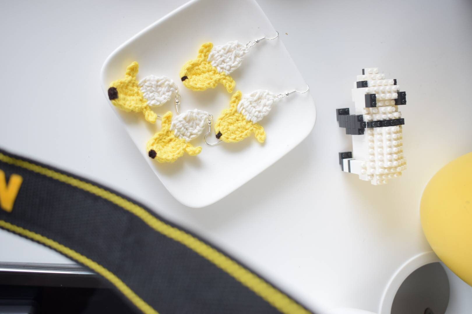 Boucle d’oreille fruité au goût de la banane pour adoucir vos tenue d’été. Elles sont faites à la main avec un fil en coton doux et très léger.