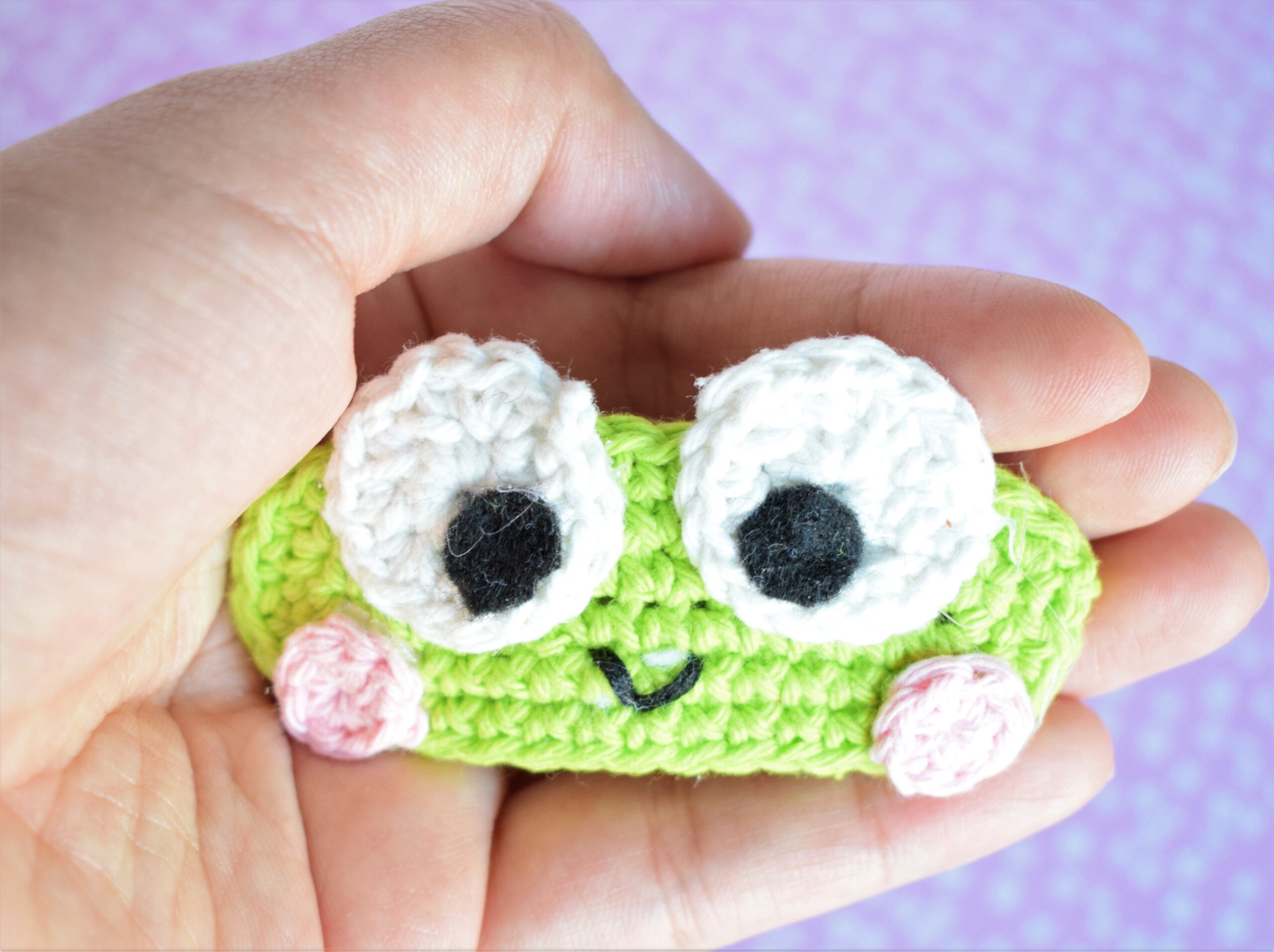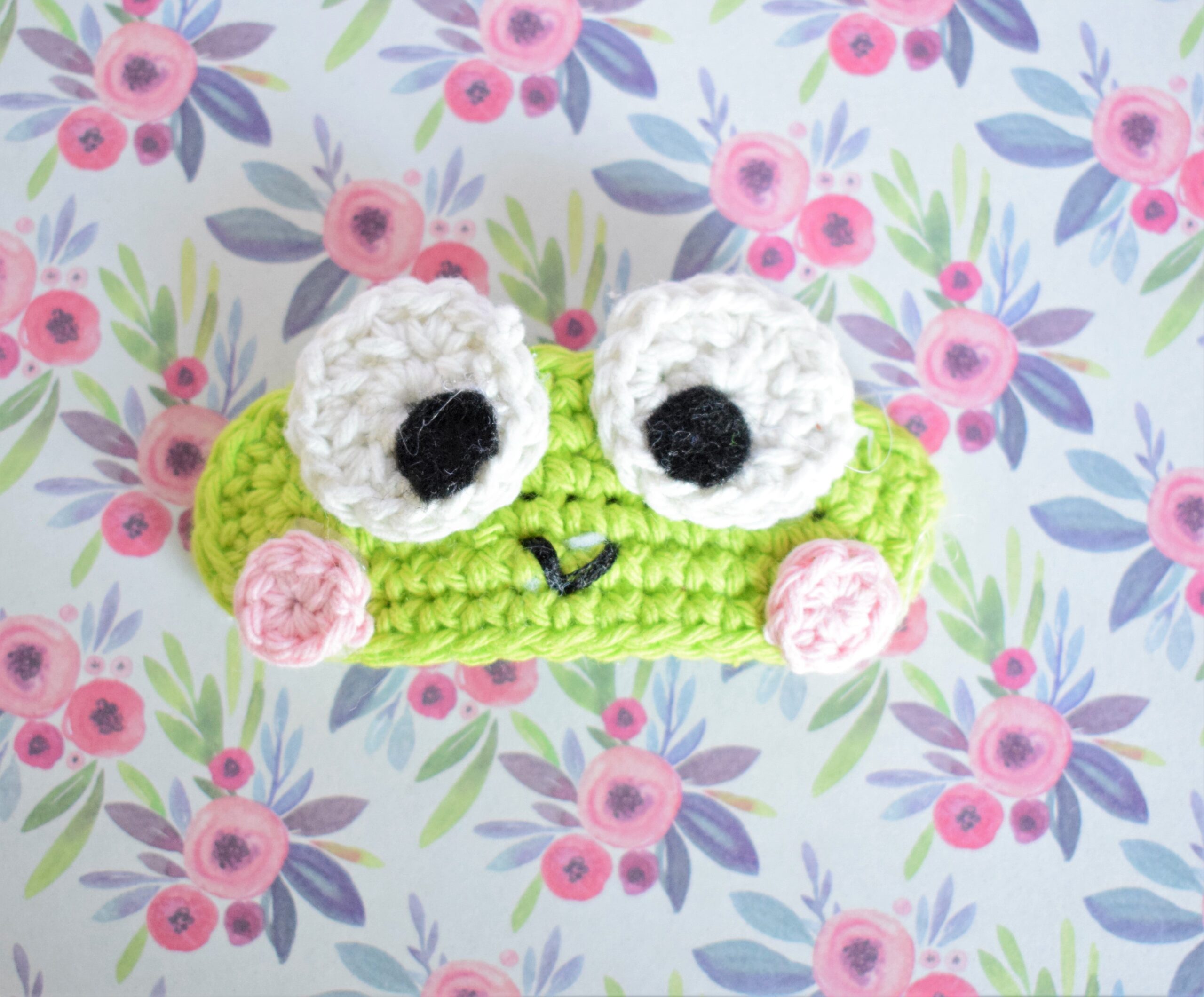 Très joli accessoire pour cheveux en forme de Grenouille méga mignon crocheté à la main et avec un fil 100% coton.