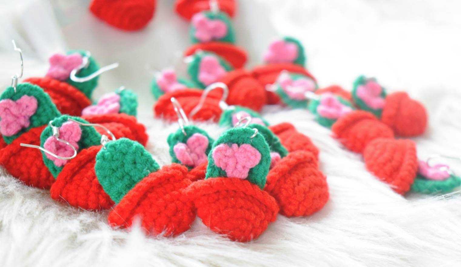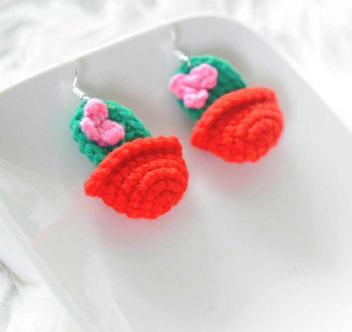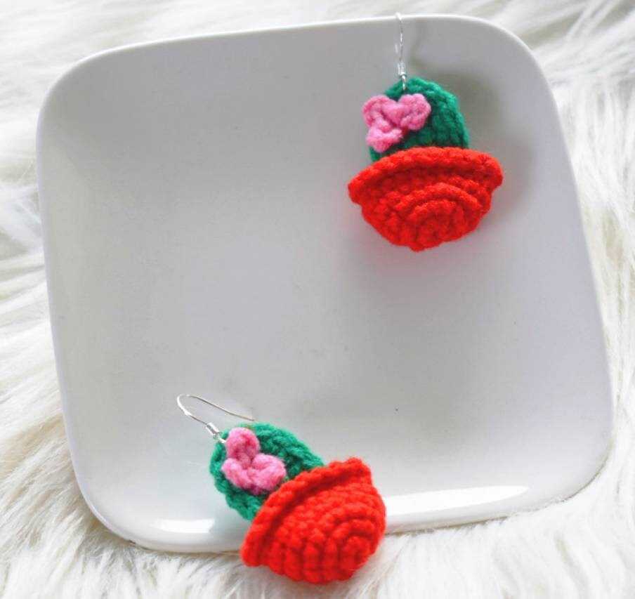 Très jolie bijou en forme de cactus dans un pot rouge méga mignon crochetés à la main et avec un fil 100% coton.