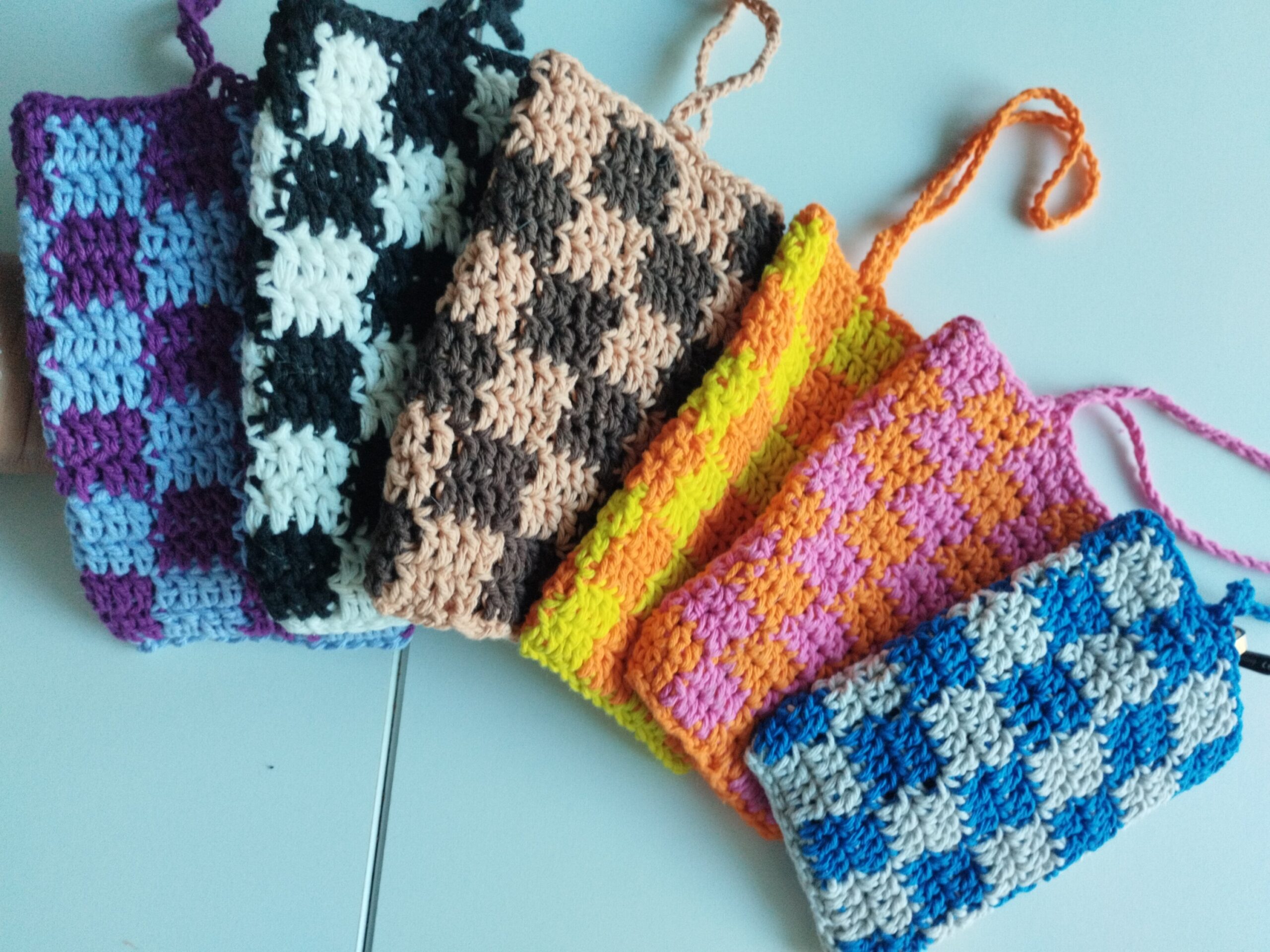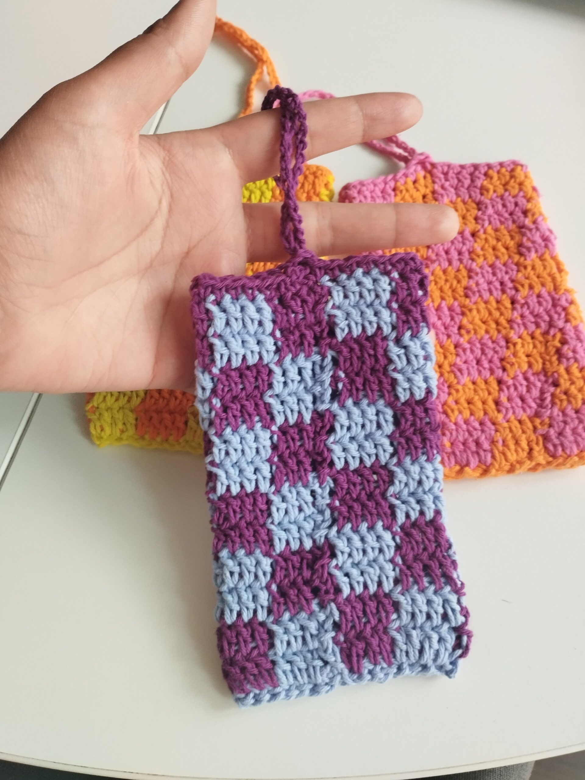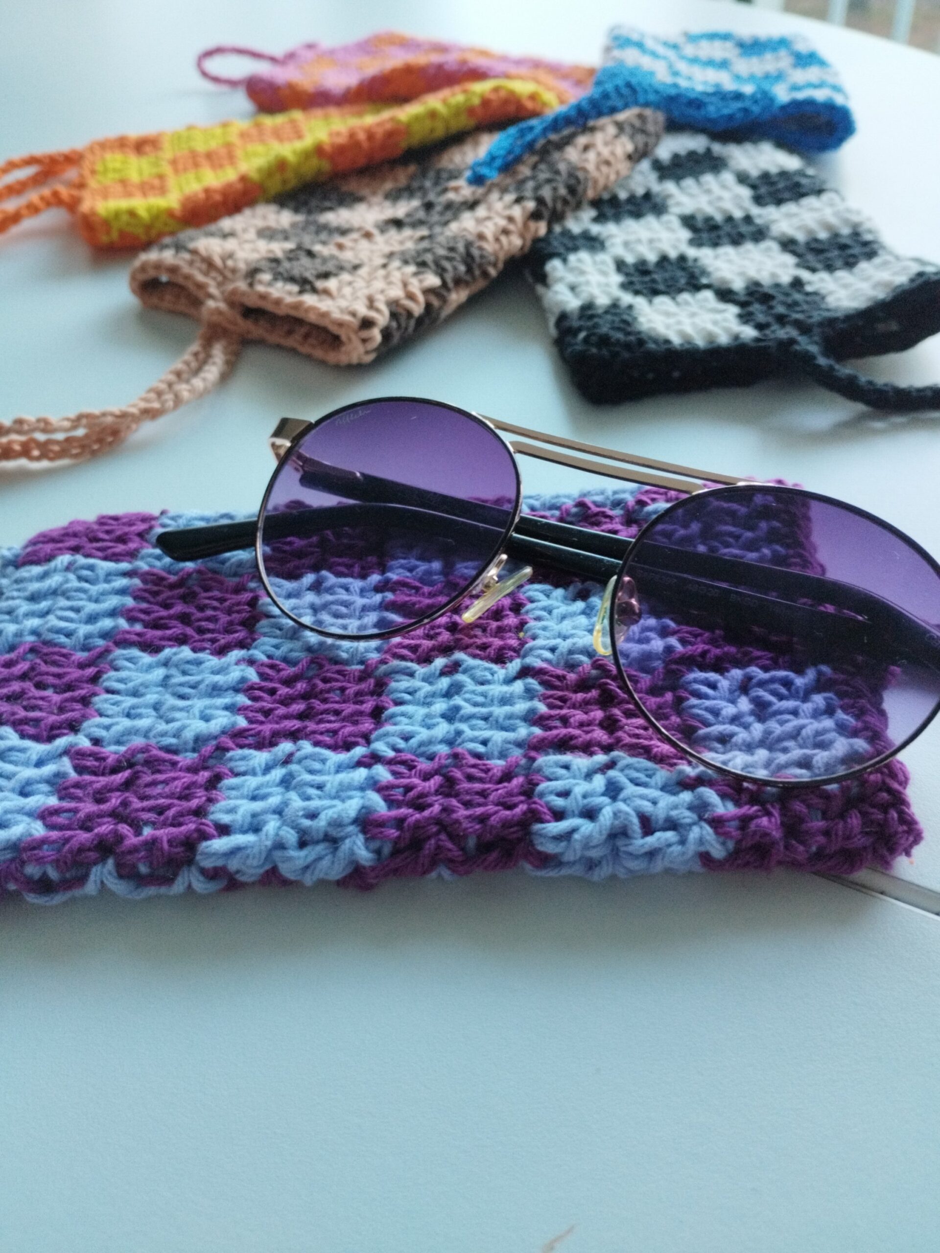 Très jolie accessoire pour ranger les lunettes et aussi les petites affaires ( baume à lèvre, pierre précieuse, billets.. crocheté à la main et avec un fil 100% coton.